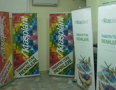 Rolluplar farklı ölçülerde imalatı yapılmaktadır.Reklam malzemelerinde bilinen standlardan rolluplar kolay kurulumu ve taşıma kolaylığı ile display stand reklam malzemesidir.