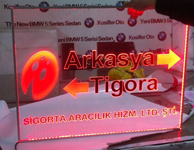 Işıklı ışıksız, kutu harf, çatı panoları, yönlendirme, led ve neon tabelalar.